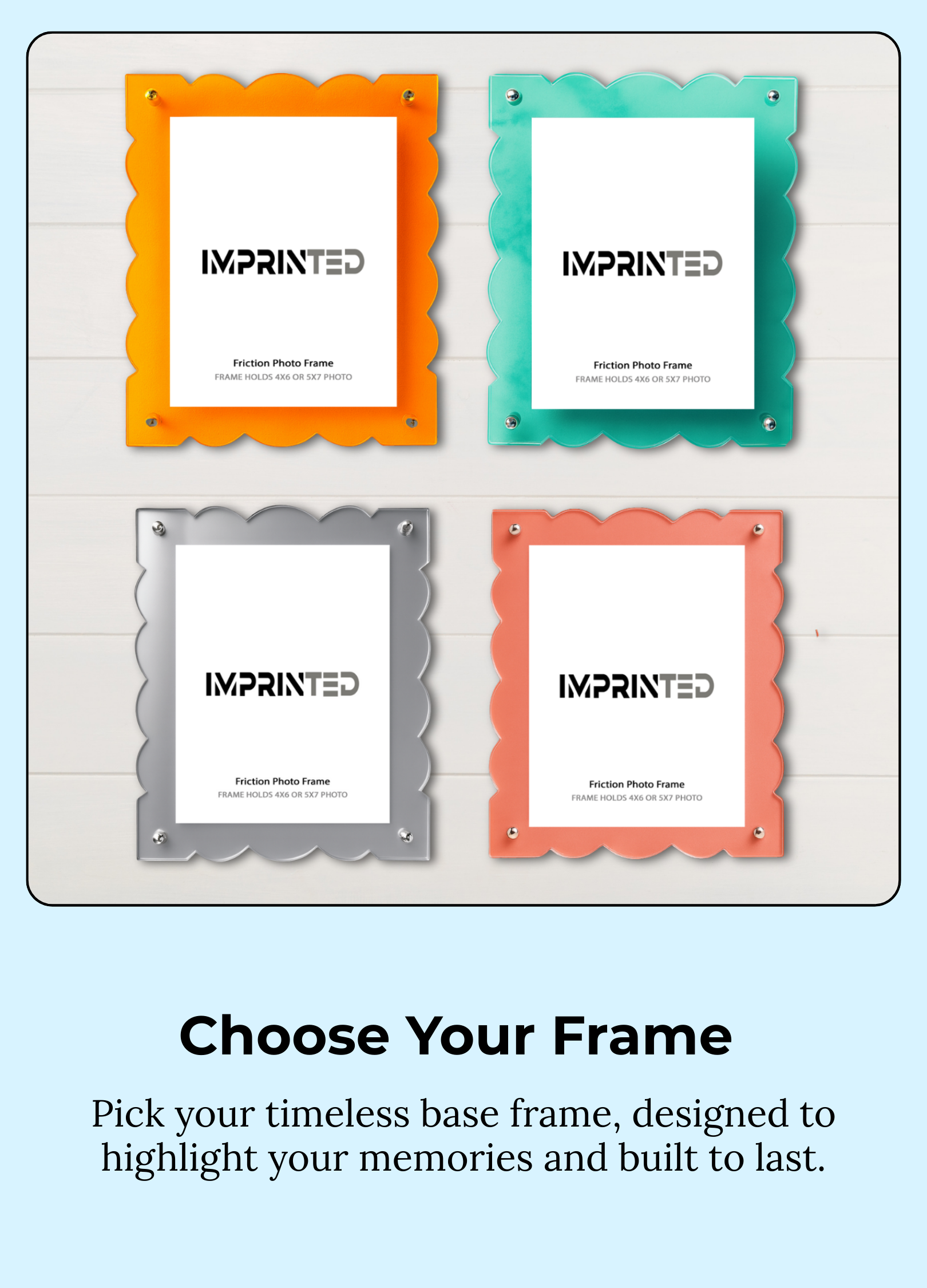Your frame adapts with you. Swap the backing to match your mood or the season, and keep your memories fresh all year.