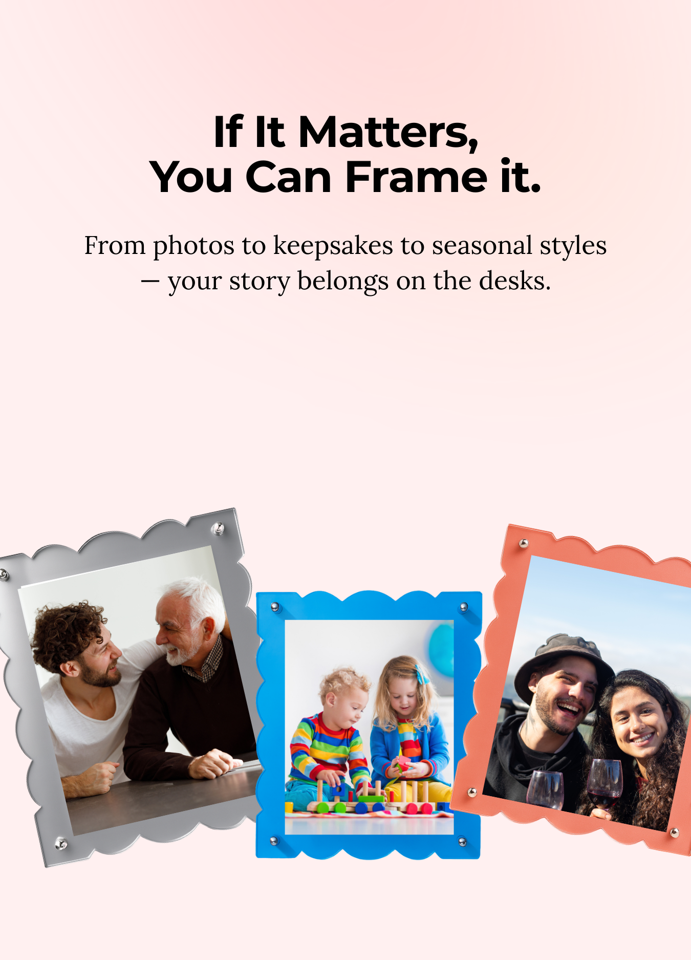 From everyday snapshots to life’s biggest moments, our frames adapt with you. Change the look, but keep the memory.